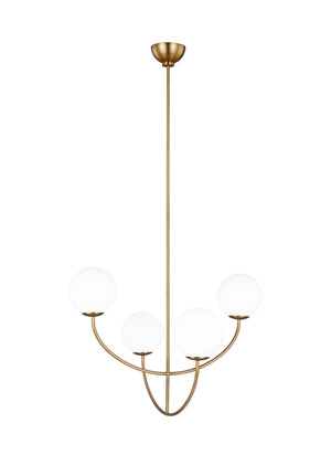The graceful arms of AERIN's Italian inspired Galassia collection is a Mid-Century modern design with Milk white glass orbs. From Modern to Modern Farmhouse to traditional settings, this large collection includes an Extra Large chandelier, two-light pendants in two sizes, four-light chandelier, one-light pendant and a number of wall sconces. Available in Burnished Brass and Midnight Black finishes.