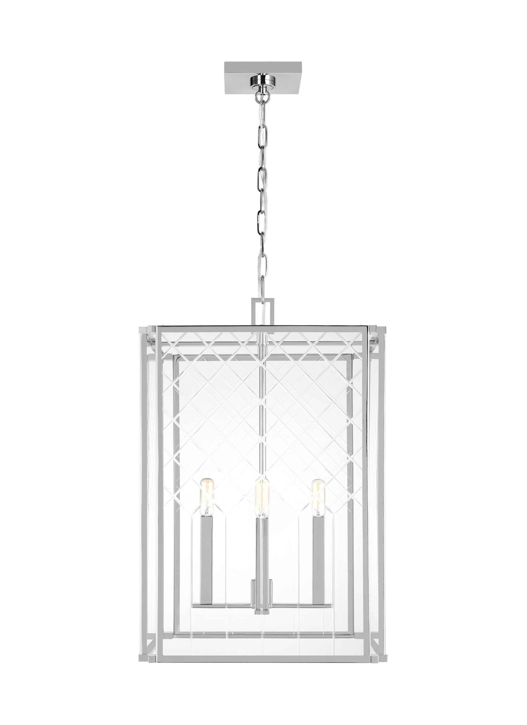 Erro's a traditional Hamptons collection, with three stunning lanterns and an elegant wall sconce with clear cut glass and a subtle diamond detail. Erro is meant to bring style and sophistication to your room. The Erro collection is by New York's famed Alexa Hampton for Visual Comfort Studio. The wall sconce and pendants are available in Burnished Brass or Polished Nickel finishes.