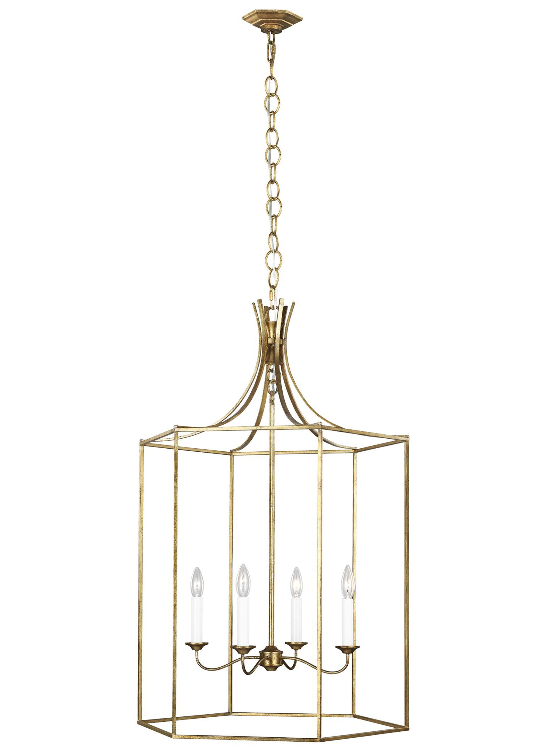 Full of fanciful flair, this stylish lantern flaunts a stylized candelabra enclosed in gilded cagework.