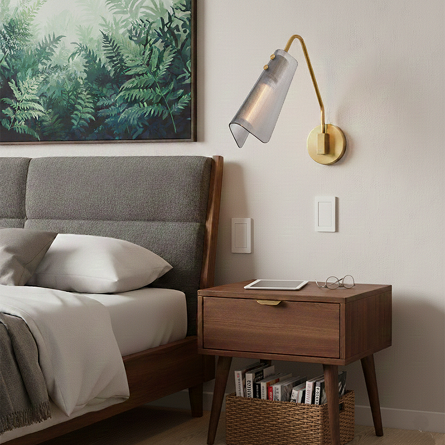 A stunning midcentury treasure, Altman’s industrial style is complemented by a large, folded glass shade at the end of an articulating arm. Ribbed smoked glass or clear glass softly diffuses and directs illumination to accentuate your surrounding space and décor.