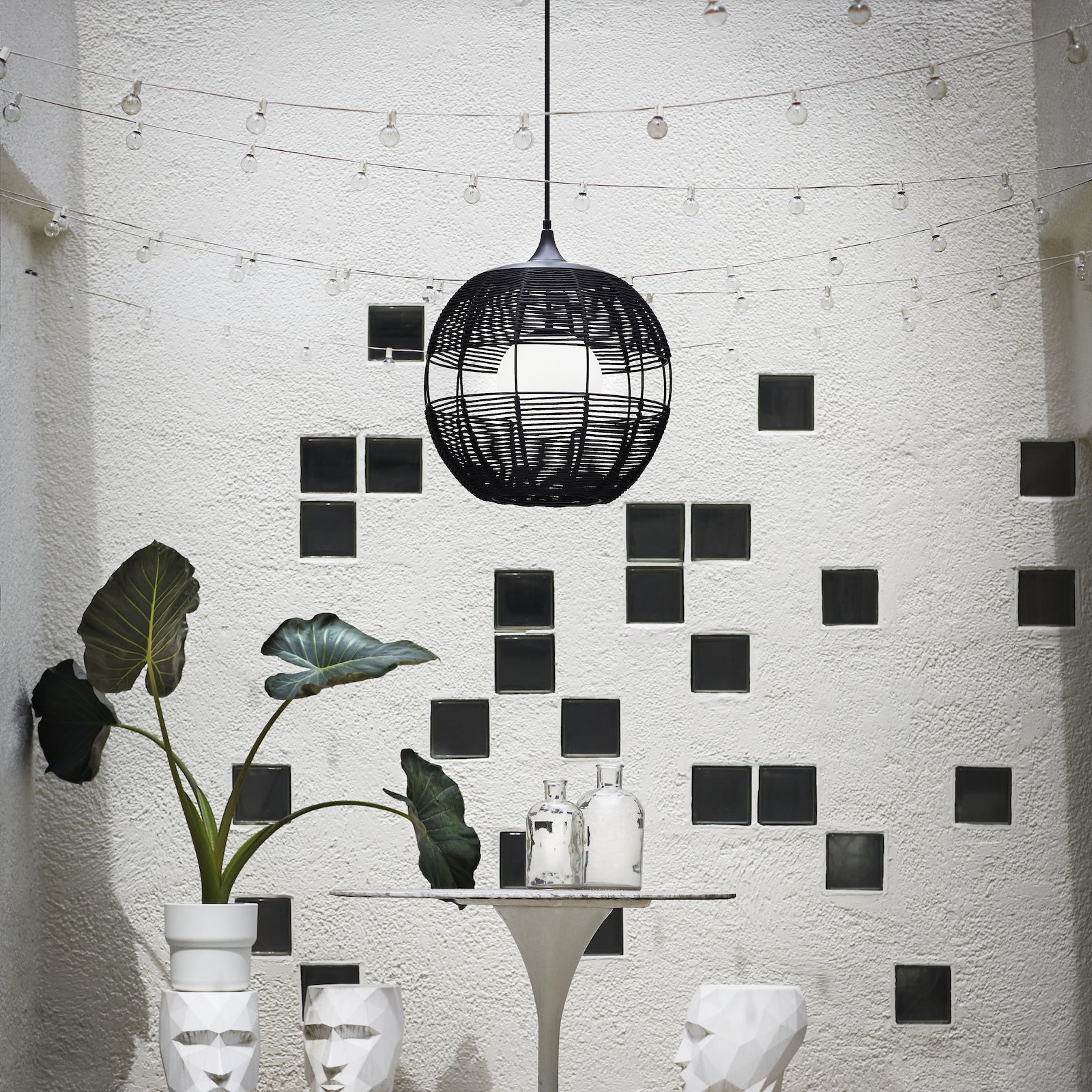 Maddox boasts an edgy, bohemian aesthetic with an open-weave design and geometric shape. This orb pendant features weather-resistant nylon rope in Black or Natural with an etched opal globe nestled inside. Maddox casts the perfect outdoor ambient light to accentuate modern outdoor living spaces.