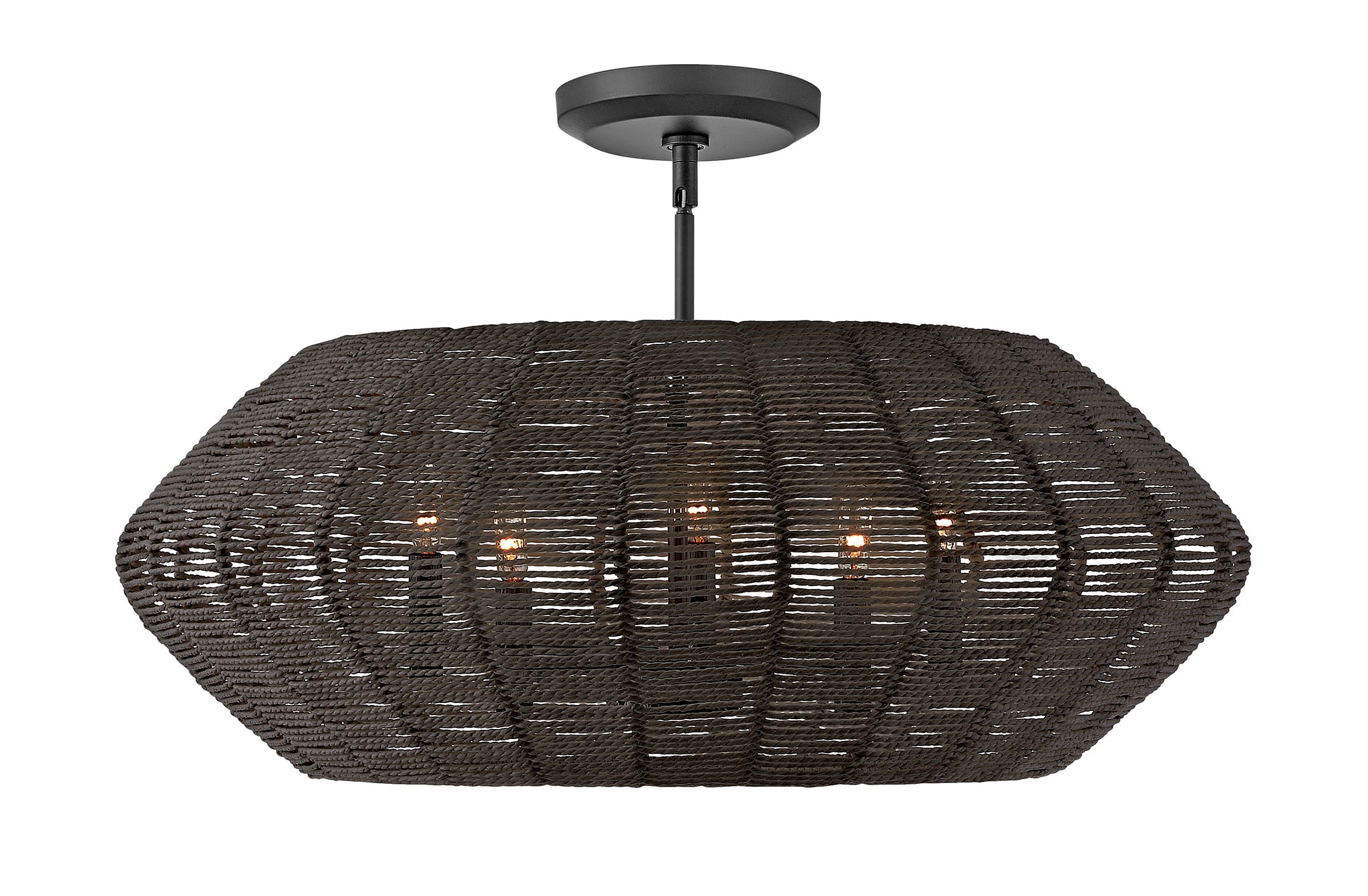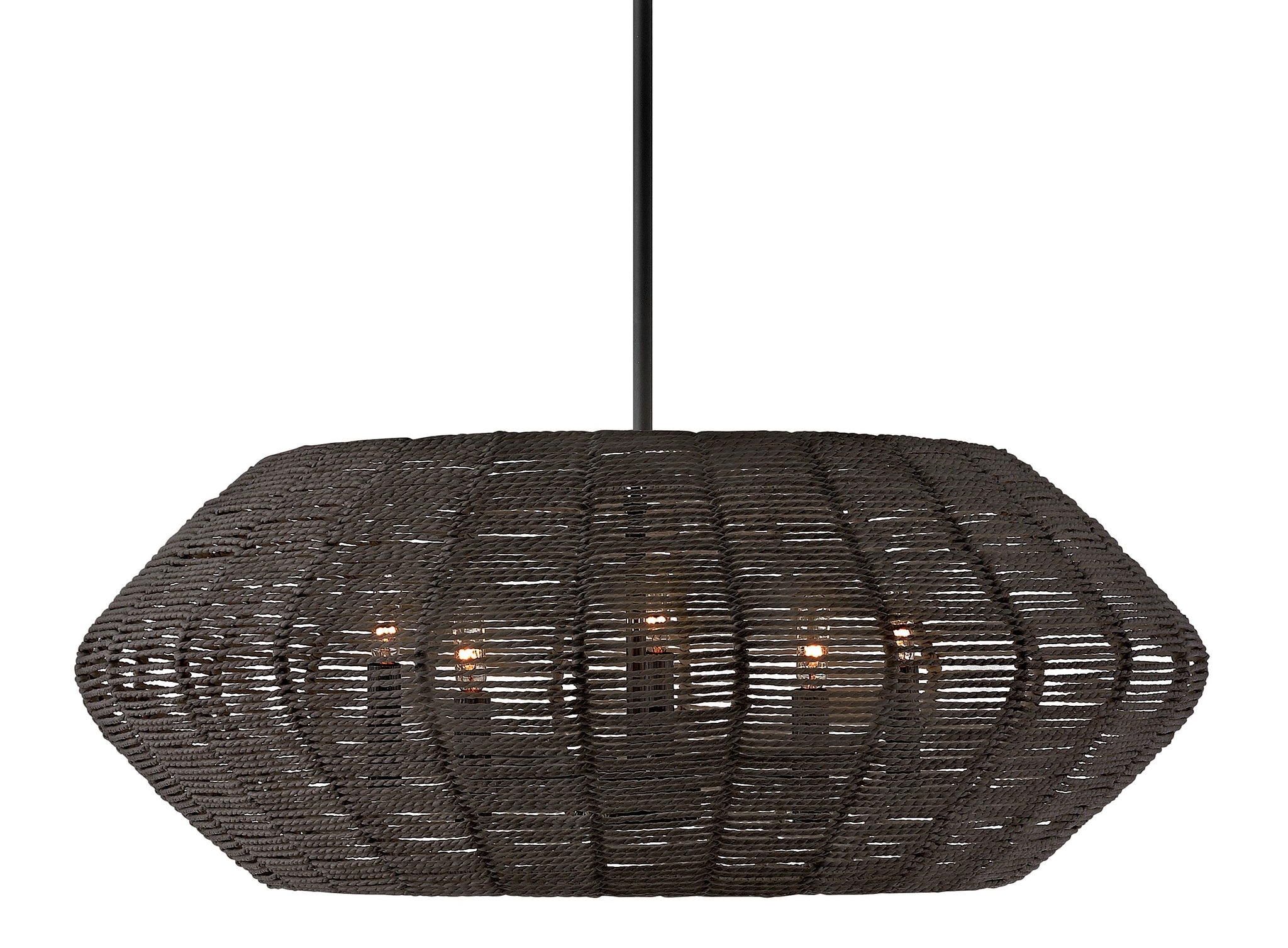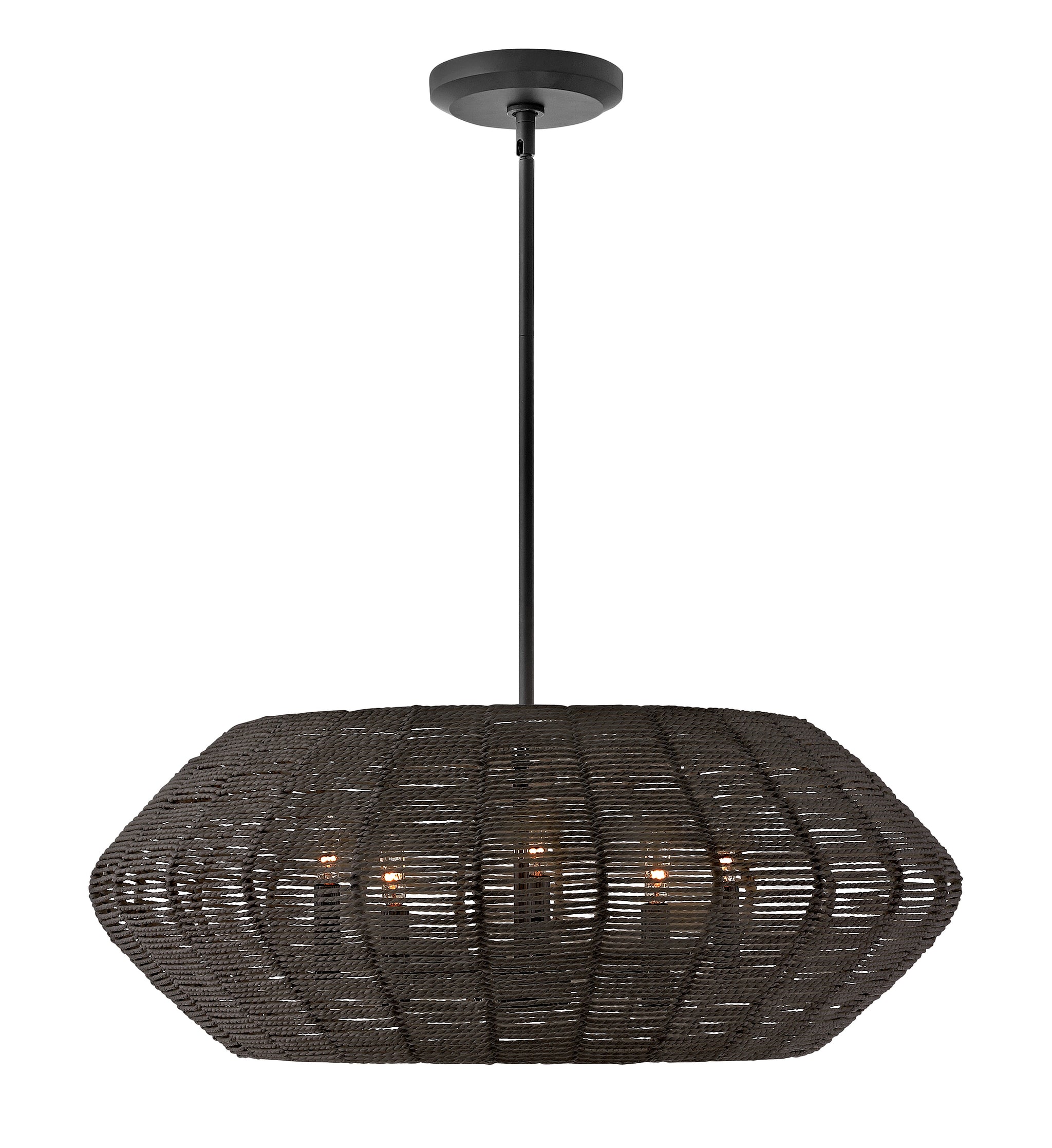 Luca's coastal vibe is permeated with a slightly exotic edge. The bold pendant showcases a robust, woven drum shade, and a full finished cluster for plenty of functional light offered in a variety of finish options. Luca is part of the Lisa McDennon Collection. The convertible fixture allows the shade to be hung close to ceiling.